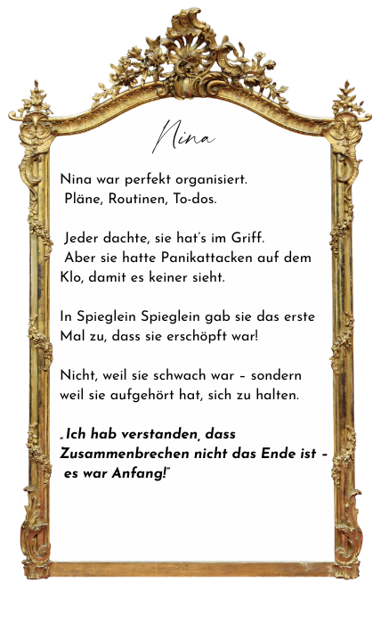 In diesem Spiegel holen wir dich Stück für Stück zurück – zu dem, was bleibt, wenn alles fällt.